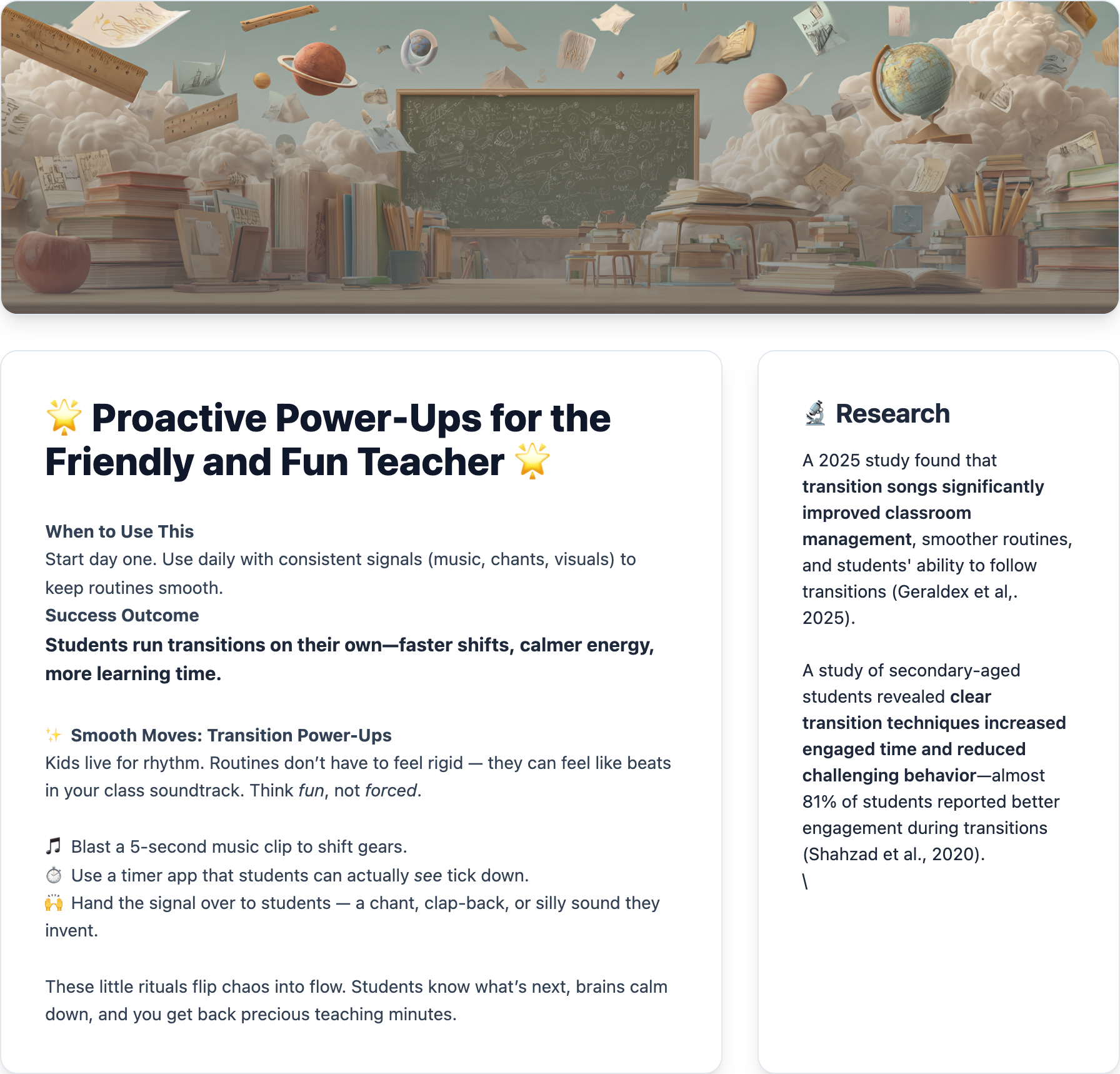 Smooth Moves: Transition Power-Ups are simple routines that flip transitions from chaos to calm. A music cue signals the shift, a visible timer gives structure, or a student-led chant makes the moment fun. Predictable signals help students move quickly and keep the learning momentum strong.