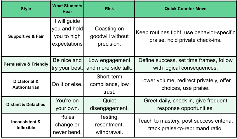 A quick review of the 5 teaching styles discussed in this 2-part series. If you missed part-1, check it out - How Teacher Student Relationships Define Your Classroom Management Style